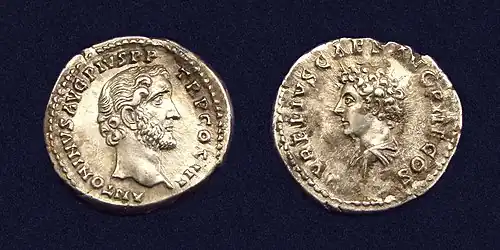 Antoninus is a likely candidate for the Antoninus named multiple times in the Talmud as a friend of Rabbi Judah Ha-Nasi.[106][107] In the Talmudic tractate Avodah Zarah 10a–b, Rabbi Judah—exceptionally wealthy and highly revered in Rome—shared a close friendship with a man named Antoninus (possibly Antoninus Pius), who frequently sought his counsel on spiritual (in this context, Jewish), philosophical, and governance matters.[108]