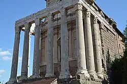 A column was dedicated to Antoninus on the Campus Martius,[14] and the temple he had built in the Forum in 141 to his deified wife Faustina was rededicated to the deified Faustina and the deified Antoninus.[136] It survives as the church of San Lorenzo in Miranda.[141]