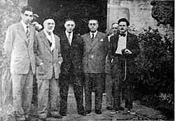 Arrúe's mother tongue was Basque and he spoke Basque also with his own children.[95] Little is known about his early views on the Basque question. In the 1930s he firmly opposed PNV and its political ambitions,[96] confronting them with a traditionalist vision of foral Euskalerria as an integral part of Spain;[97] simultaneously he stood out by delivering all his speeches in Basque, at that time practiced only by some PNV politicians.[98] As a leading Carlist politician in Gipuzkoa, during the Civil War and in the 1940s he showed a concern for Basque culture and for Basque provincial rights, though not for Basque political ambitions.[99]