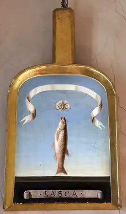 He was born in Florence or in Staggia Senese (he wrote of himself: Io sono a Staggia, ch'è la patria mia, e de' miei primi l'antica magione…[2]) of a good family, but there is no record of his upbringing and education. He probably began to practise as an apothecary as a youth; and owned the then famous Farmacia del Moro near the Cathedral. In 1540 he was among the founders of the Accademia degli Umidi, which was soon renamed Accademia Fiorentina. He later took a leading role in the establishment of the more famous Accademia della Crusca, which published his Vocabulario of words accepted as the purest Italian. To both societies he was known as Il Lasca or Leuciscus, a pseudonym which is still frequently substituted for his name.[3]