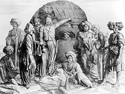 Lebolo (the first standing from the left) with Drovetti (standing, center) in Egypt in 1819