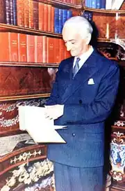 During all his political career, Segni acted as a moderate conservative, staunchly opposing the "opening to the left" proposed by Fanfani and Moro, but he also tried not to bring his own party too far to the right.[83] He was the first Italian president to resign from office.[84]