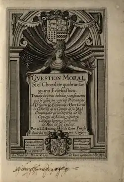 - Cuestion moral si el chocolate quebronta el ayuno ecclesiastica (1636)
