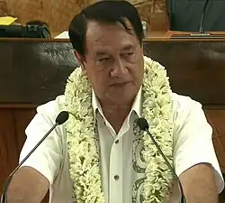 He was re-elected again at the 2018 election.[22] Following the unseating of Oscar Temaru for breaching election campaign rules, he became leader of the Tavini Huiraatira in the Assembly.[23] He later criticised the French courts for being manipulated by the government and punishing Temaru for seeking justice for French Polynesia before the International Criminal Court.[24]