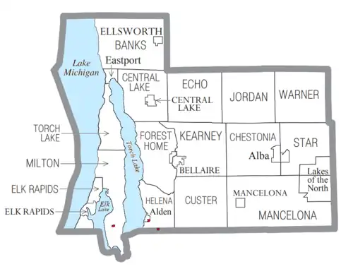 - ^ "2020 CENSUS - SCHOOL DISTRICT REFERENCE MAP: Antrim County, MI" (PDF). U.S. Census Bureau. Archived (PDF) from the original on July 22, 2022. Retrieved July 22, 2022. - Text list