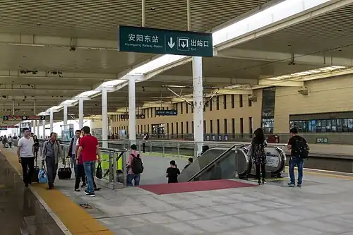 Anyang East railway station (Chinese: 安阳东站) is a railway station on the Beijing–Guangzhou–Shenzhen–Hong Kong high-speed railway that is located in Anyang, Henan, China. It opened with the Beijing–Zhengzhou section of the railway on 26 December 2012.[1]