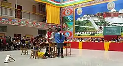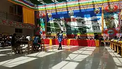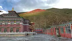 The Anymachen Tibetan Culture Center is a school for boys in Qinghai China. It was founded in Zhandetan, a remote rural area near the town of Tawo Zholma, Xiaduwu Township, in Maqên County of the Golog Tibetan Autonomous Prefecture at the foot of a mountain glacier of the Amne Machin, by Tserin Lhagyal, Rinpoche of Guri Monastery, in the Nyingma tradition, who patiently cultivated Chinese officials over a period of years and gained permission to establish the school. Donations totaling $3 million were raised throughout China with 80% of the funds being donated by Han people who support Tibetan Buddhism. The small student body, young Tibetans from rural backgrounds, some orphans, study Tibetan language and culture, as well as Mandarin and English. A girls schools required fundraising and a separate building.[1] As of 2016, both boys and girls were in attendance at the school.