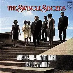 Anyone for Mozart, Bach, Handel, Vivaldi? is a CD compilation re-issue of music by the Swingle Singers. It combines tracks from two previous LP releases, Going Baroque (tracks 6 – 16) and Swinging Mozart (aka Anyone for Mozart?) (tracks 1 – 5).