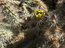 The bajadas are predominantly creosote bush-bur sage with creosote bush (Larrea tridentata) and the palo verde-cactus shrub ecosystems with the palo verde tree (Parkinsonia microphylla), cacti, and ocotillo. In the washes, Colorado/Sonoran microphylla woodlands can be found. These woodlands include such plants as smoke tree (Psorothamnus spinosus), velvet mesquite (Prosopis velutina), and catclaw (Acacia greggii).[11] The park is home to elephant trees (Bursera microphylla), which are "fairly common in parts of Baja California but north of the border practically confined to the Anza-Borrego region."[5]