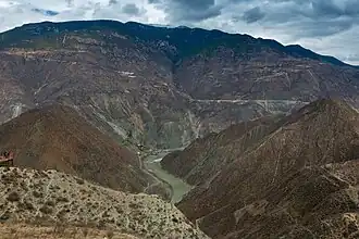 Grapes are grown between 7,000–8,500 feet (2,100–2,600 m) elevation across the four villages of Xidang, Sinong, Shuori and Adong.[3][8] The vineyards sit in a rain shadow, requiring snowmelt to be channeled for irrigation.[2][5] It is a four-hour drive from Shangri-La City, on mountain roads which can be unsafe and exacerbate difficulties.[2][6][9]