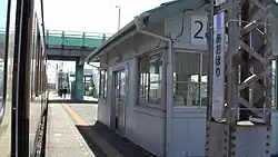 The station consists of a single island platform serving two tracks, connected to the station building by a footbridge. The station is staffed.