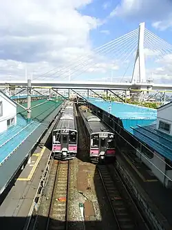 Aomori Station (青森駅, Aomori-eki) is a railway station in the city of Aomori in Aomori Prefecture, Japan. The station has been operating since September 1891, though the most recent station building, which consists of three island platforms connected to the station building by a footbridge, was completed in March 2021. Since 1987 the station has been used by the East Japan Railway Company (JR East) which operates various services to destinations throughout the Tōhoku region. Since 2010 the station's operations have been jointly run by JR East and the Aoimori Railway Company, a third sector, regional rail operator.