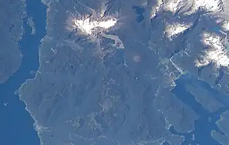 ![]() The volcano is visible in the lower center of this NASA image. | |