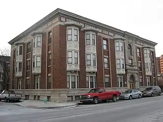 Indianapolis | Built in 1905 by developer E.G. Spink for Caleb N. Lodge, this is an example of the "Eastern" flat type.[1] |