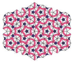 However, an aperiodic set of tiles can only produce non-periodic tilings.[1][2] Infinitely many distinct tilings may be obtained from a single aperiodic set of tiles.[3]
