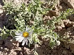 Aphanostephus ramosissimus is an annual herb up to 45 cm (18 inches) tall.[4][5] It produces multiple flowers, each containing a few dozen long, thin, white petals that radiate from a yellow central disc.