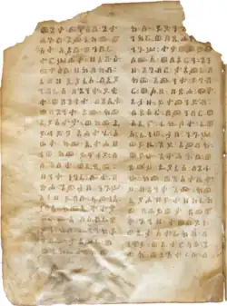 There is also a single fragmentary manuscript in Ethiopic, now in Addis Ababa, Walda Masqal Centre of the Institute of Ethiopian Studies, Schneider ms. frag. 19. It is a parchment bifolium from the 13th century or earlier. The translation itself was made from Greek between the late 4th century and the 6th, probably nearer to the early 5th century. The translation seems to have been fairly literal, but the surviving text has been greatly corrupted in its transmission.[24]