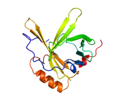 ApoD concentration in human plasma varies between 5 and 23 mg/100 ml.[30] In the nervous system, the ApoD mRNA is expressed by fibroblasts, astrocytes and oligodendrocytes[31][32][33] As a glycoprotein with a peptide signal, ApoD is secreted. Yet it can also be actively reinternalized. The transmembrane glycoprotein Basigin (BSG; CD147) was identified as an ApoD receptor.[34] BSG is a membrane glycoprotein receptor, a member of the immunoglobulin family, involved in several pathologies such as cancer and Alzheimer's disease.[35]