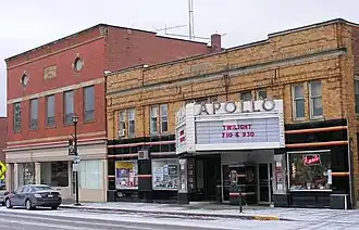 The Apollo Theatre is a 1913 art-deco moviehouse located in Oberlin, Ohio and maintained by Oberlin College. It is notable as one of the earliest theaters to screen "talkies" and for its use as one of Northeast Ohio's film forums.[1]