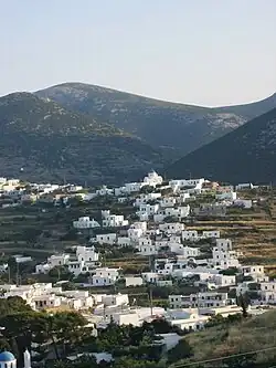 Apollonia (also called Stavri[2]) is a village in Sifnos, Cyclades, Greece. It is the capital (chora) and largest village of the island with 869 inhabitants as of the 2011 Greek Census.[3] It is the head of the homonymous community, which includes the villages Vathy, Kamares, Kastro, Platys Gialos, Kato Petali, Faros and Chrysopigi and has a total population of 1,898 residents (2021).[1] It is named after the god Apollo of the Greek mythology.[2]