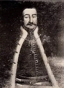 The exact origins of the family are subject to debate. Traditionally, the Apors claim descent from the Hungarian chieftain Apor, known for having laid siege to Constantinople. Transylvanian historian Baron Peter Apor de Altorja (1676–1752) claims such descent. In addition, acknowledging that no surviving written sources explicitly state so, he proposes that Apor was a legitimate son of Hungary's Grand Prince Árpád.[2] In Transylvanian folklore, the family is assumed to have been rabonbáns, ancient rulers of the Székely people,[3] who resisted conversion to Christianity for several centuries after King Stephen I had banned the original Hungarian pagan religion.[4] Already during this time, the Apor family inhabited a fortress in Bálványos (the name itself meaning "idolatrous", referring to the Apors' beliefs).