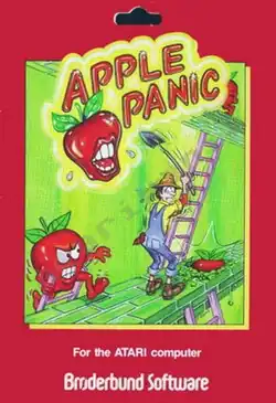 Apple Panic is a game for the Apple II programmed by Ben Serki and published by Broderbund Software in 1981.[1] Apple Panic is an unauthorized version of the 1980 arcade game Space Panic, the first game with ladders and platforms.[3] While the arcade original remained obscure, Apple Panic became a top seller for home computers. It was ported to the Atari 8-bit computers,[4] VIC-20, IBM PC (as a self-booting disk), and TRS-80.[5]