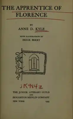The Apprentice of Florence is a children's historical novel by Anne Dempster Kyle set in 15th century Italy and Constantinople. It was published in 1933 and was a Newbery Honor recipient in 1934.[1] The book is illustrated by Erick Berry.