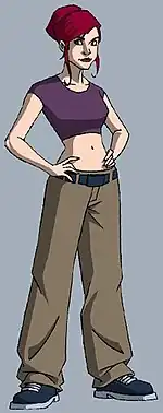 While depicted as a red-haired adult woman in the comic series and the 1987 and 2003 animated series, she is depicted as being a teenager in the 2012 and 2018 animated series, 2022 film, and the 2023 film Mutant Mayhem. Her love interests have varied, though she is typically paired with the vigilante Casey Jones.