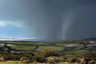 In parts of the Northern Hemisphere, an April shower is rain during the month of April. One of the major causes of the often heavy downpours is the position of the jet stream.[1] In early spring, the jet stream starts to move northwards, allowing large depressions to bring strong winds and rain in from the Atlantic. In one day the weather can change from springtime sunshine to winter sleet and snow. The track of these depressions can often be across Ireland and Scotland bringing bands of rain followed by heavy showers (often of hail or snow) and strong blustery winds. In France, this meteorological phenomenon is known as "Giboulées de mars" (March sudden sleet showers).