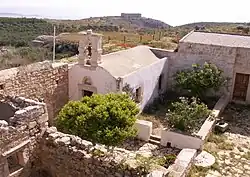 It was destroyed by earthquake during the 7th century. By the 12th century, a monastery of St. John Theologos had been built on the site; it continued in operation until 1964. The site is now maintained by the Greek Ministry of Culture, Department of Antiquities.[11] The hilltop, about 150 metres above the sea, commands views of Souda Bay and the Akrotiri Peninsula to the north, the Lefka Ori (White Mountains) to the south, and Kalives and the Turkish Izzedin Fortress to the east; the city of Chania is not quite visible to the west.