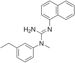 - ^ Reddy NL, Hu LY, Cotter RE, Fischer JB, Wong WJ, McBurney RN, et al. (January 1994). "Synthesis and structure-activity studies of N,N'-diarylguanidine derivatives. N-(1-naphthyl)-N'-(3-ethylphenyl)-N'-methylguanidine: a new, selective noncompetitive NMDA receptor antagonist". Journal of Medicinal Chemistry. 37 (2): 260–7. doi:10.1021/jm00028a009. PMID 8295213.