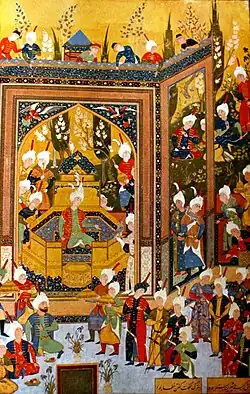 - ^ "The picture is also rewarding as an accurate description of the costumes, noblemen, and setting at Shah Tahmasp's court" in Welch 1976, p. 76