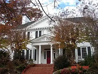 Aquone was built in 1925. It is a 2+1⁄2-story brick structure in the Colonial Revival style. Leland Cardwell, a Johnson City architect, designed the house, modeling it after the design of an unidentified Colonial mansion built in Maryland in 1748. The house is on a 3.6-acre (1.5 ha) lot between Roan Street and U.S. Highway 11E, it is screened from those roads by trees and a terraced lawn.[3] At the time of its construction, the site was north of the city limits of Johnson City.