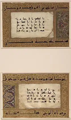 - ^ a b c Massumeh, Farhad; Rettig, Simon (2016). The Art of the Qu'ran: Treasures from the Museum of Turkish and Islamic Arts. Washington, DC: Smithsonian Institution. pp. 104–105. ISBN 9781588345783.