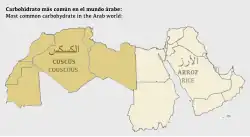 In the Arab world there is no specific way to name this way of preparing rice, as it is the basic way of preparing rice. In Egyptian Arabic: Rozz be el shyeriyah, and in Lebanese Arabic: Rizz bi-sh-shʿayriyyeh, more specifically rice with vermicelli, is a staple that accompanies most meals in the Middle East.[8] This does not apply to the Maghreb. There is a common confusion of thinking that, being Arab countries, they also consume Arab rice. However, in North Africa the staple carbohydrate is wheat semolina called couscous. Rice is known but not common. And vice versa: couscous is known in the Middle East but it is not common (there is a simile in Palestine called maftul). When speaking of the Middle East, reference is made to Bahrain, Egypt, Iraq, Jordan, Kuwait, Lebanon, Oman, Palestine/Israel, Qatar, Saudi Arabia, Syria, United Arab Emirates, and Yemen.