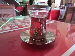 Arabic tea (Arabic: شاي عربي, romanized: šāy ʿarabiyy, pronounced shay [ʃæiː] ⓘ), is a variety of hot teas popular throughout the Arab world. It is commonly served to guests and business partners at meetings and social events, and has been drunk by Arab people for centuries.[1][2]