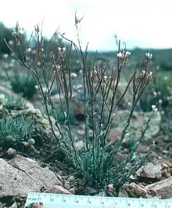 Boechera crandallii, or Crandall's rockcress, is found in Wyoming and Colorado where it is found on limestone chip-rock and stony areas, often among sagebrush.[2] Flowering time is from May to June.