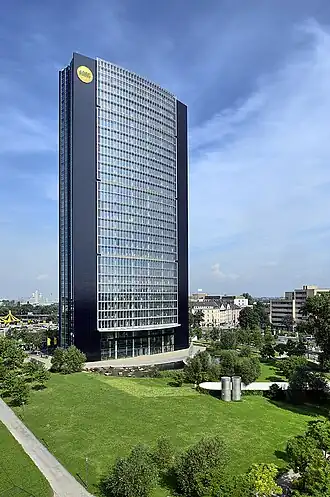 ARAG Tower is a 31-storey, 124.9 m (410 ft) office skyscraper, in the northern district of Mörsenbroich, Düsseldorf, Germany. The tower is the tallest building in Düsseldorf, and it serves as headquarters for the leading legal insurer worldwide, the ARAG Group.[5]