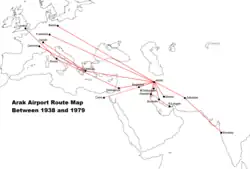 The airport was established by the Britain in 1938 and named Sultanabad[4] (the former name of Arak). Following the establishment of the consulates of England, Germany, and Switzerland and companies such as Ziegler & Co. in Arak, the British thought of establishing an airport due to the city's distance from the sea and maritime facilities as well as major airports.
