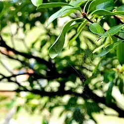 Males also build orb webs, often near the webs of females. Their webs are usually smaller.[2]