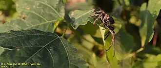 The spider primarily resides in garden, fields, and forest ecosystems.[2] When considering the spider's global distribution, it is commonly found in East Asia. Specific countries in which it is primarily spotted include China, North and South Korea, and Japan.[3]