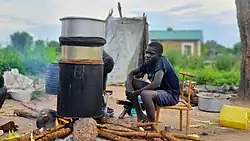 Araqi (Arabic: عرقي, romanized: ʿaraqī; also araki, aragy)[1] is a date-liquor distilled in Sudan. The 1983 introduction of sharia in Sudan prevented licit sales of alcohol, but a black market exists to meet local demand. The drink is made by mixing dates with water and yeast, fermenting the mix, and then distilling it. It is usually drunk neat.[2]