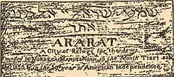 Ararat, established as a city of refuge for the Jewish nation, was founded in 1825 by New York politician and playwright Mordecai Manuel Noah, who purchased most of Grand Island, a 27-square-mile (70 km2) island near Buffalo, New York.[1] It failed to be a Jewish city.[2]