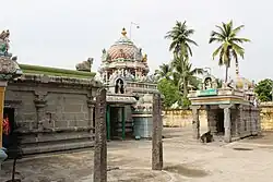 Most of the Chola temples built during the period of 866 and 1004 CE is associated with certain military events or political campaign. During 940 Parantaka I had frequent trouble from invading Rashtrakutas. Takkolam War, dubbed as the greatest war held in the Tamil region, was fought between Cholas and Rashtrakutas. Parantaka's son Rajaditya was killed in the campaign and Krishna III assumed the name "conqueror of Tanjai and Kanchi".[2] The temple has five inscriptions from the period of the Medieval Cholas like Vikrama Chola and Kulothunga Chola.[3] In modern times, the temple is administered by the Hindu Religious and Charitable Endowments Department of the Government of Tamil Nadu. The bronze idols of the temple were stolen and were later restored by idol wing of Tamil Nadu Police during 2009.[4]