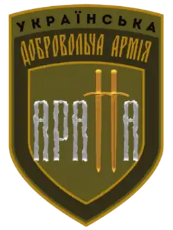 It was created on 17 December 2014 as the 8th Separate Company in the frontline area of the Donetsk Oblast with the prospect of developing into a battalion.[1] In March 2015, it was deployed and was taking part in the Shyrokyne standoff[2] facing combat approximately every 12 hours, mostly mortar and sniper fire as well as DRG infiltration, it also stopped a major separatist infantry assault through the settlement.[3] From March to July 2015, the Aratta battalion was deployed near the village of Hnutove encountering DRGs and landmines.[4] On 15 June 2015, a soldier (Lutsiv Andriy) died.[5] On 28 June 2015, it was expanded to a Battalion incorporating personnel from the military counterintelligence "Gonta" and gendarmerie "Smerets".[6] On 16 July 2015, a soldier (Bayeshko Oleksandr) died.[5] On 24 September 2015, a soldier (Podarovsky Oleh) died.[5] In October 2015, it was deployed in between Shyrokyne and Vodiane.[4] On 28 December 2015, the commander of the 8th battalion, Gergert Andriy Valeriyovych withdrew his unit from Right Sector Ukrainian Volunteer Corps and the Right Sector command considered it to be defunct as part of Right Sector[7][8] however the battalion continued its operations as part of the Ukrainian Volunteer Army.[9][10] Two more soldiers of the battalion (Anatoly Hryshchyshyn and Lashkhia Kote) were killed in 2015.[5] In 2015, the DRG "Bear" became part of the eighth battalion.[11] On 10 March 2016, a soldier (Shilov Serhiy) was killed.[5] On 5 May 2016, it released a video showcasing automatic grenade launcher attacks on separatist positions.[12] On 27 June 2016, a group of the battalion discovered a separatist stronghold in the direction of Sakhanka with reinforcement from the 54th Reconnaissance Battalion and the 73rd SSO Center. During the operation, three separatists were killed and eight were captured.[4][13] On 10 August 2016, a soldier (Mykola Muravsky) died.[5] On 26 August 2016, a soldier of the battalion (Sheludko Volodymyr Oleksandrovych) was killed by sniper fire near Shyrokyne[14] and another (Okun Mykola) was also killed in action.[5] On 31 August 2016, a soldier of the battalion (Sheludko Volodymyr) was killed in action.[5] On 3 November 2016, a soldier (Stefanovich Viktor) died.[5] On 22 November 2016, a soldier of the battalion (Kaptovets Maryan and Britavskyy Eduard) were killed in action.[5] On 26 December 2016, a soldier (Kazarin Vladislav) died.[5] On 4 January 2017, a soldier (Father Valentin) was killed in action.[5] On 21 June 2017, during a battle near Avdiivka, as a result of a direct hit by an enemy tank, two soldiers of the battalion (Andriy Lutsiv and Volodymyr Ivanyk) were killed and two more wounded,[15] another soldier (Moroz Oleksandr) was killed in battle.[5] On 14 June 2018, a soldier (Yuriy Dovhanyk) was killed in action.[5] Another soldier (Sergiy Yechkalo) died in 2018.[5] On 11 January 2019, a soldier of the battalion Volkov Mykola was killed in action.[5] On 10 April 2019, a soldier of the battalion, Mykola Volkov was wounded by separatists and died a some days later of his injuries.[16] On 15 April 2019, two soldiers of the battalion (Cherkashina Tetyana and Lamroev Aidy) were killed in combat.[5] On 30 June 2019, a soldier of the battalion (Uncle Vova) was killed in action.[5] On 5 July 2019, a soldier of the battalion (Shemurovsky Vladislav) was killed in action.[5] It withdrew from the frontlines in 2018, they were disarmed in 2019 and took on a training role but some elements continued operations.[17][18] In 2019, the DRG Bear destroyed a separatist stronghold, which was captured on a thermal imager video, showing fighters approaching separatists positions at night, shooting them and throwing grenades at them, after which a large explosion occurred.[19][11] The DRG Bear was also alleged to be composed of "neo-Nazi" personnel.[11] On 4 January 2020, a soldier (Pidlubny Ivan) died.[5] On 6 May 2021, a soldier (Volodymyr Galahan) was killed in action.[5]