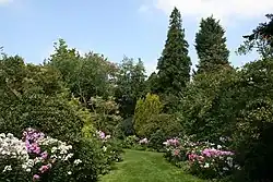 The Arboretum Kalmthout is a botanical garden in Kalmthout, Belgium. It was started as a tree plantation by Charles Van Geert in 1856. Van Geert developed a collection of rare plants and trees before selling the property after 40 years to Antoine Kort. Kort added an extensive collection of Hamamelis or witch hazel to the nursery, but was forced to close his business due to the Great Depression of the 1930s. In 1952, the property was purchased by the brothers Georges and Robert de Belder, to save it from being destroyed by a housing development. At the site, the year that they purchased the property, the de Belder brothers founded the International Dendrology Society (IDS) to promote preservation and conservation of rare or endangered woody plants. Robert de Belder and his wife, Jelena de Belder-Kovačič worked together to build an internationally known arboretum, where plant enthusiasts could study and exchange knowledge and information about plants. In 1986 it became property of the Antwerp province and is now open to public.[1][2]