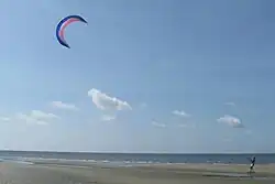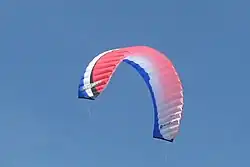 The arckite or twinskin kite is a type of traction kite designed and patented by Peter Lynn. It is a very stable, safe and secure type of powerkite. It can be used for all kinds of kite powered sports, for example: kiteboarding, landboarding, kite buggying or snowkiting. The shape of the kite is similar to a C-shaped leading edge inflatable kite, however the construction is similar to a foil kite. These kites also fall into a category of foils called "closed-cell inflatables", meaning that the ram-air inlets on the leading edge of the kite are normally closed by flaps that act as one-way valves to maintain internal air pressure. It is this feature that makes the kite useful for kitesurfing since, unlike standard open-cell foils, if the kite crashes on the water, it will stay inflated and float long enough for the rider to recover and re-launch.