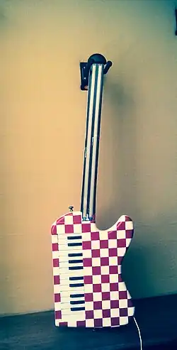The Arcadetar is a music performance controller, developed in 2012 by the Italian engineer and composer Andrea Lomuscio. It consists of a 25-note keyboard embedded in a guitar body, and a guitar neck with position and pressure sensors.