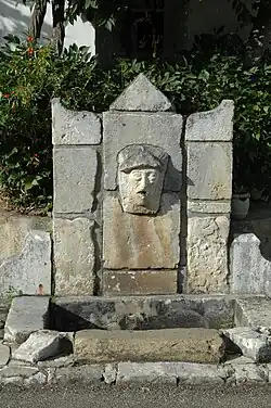 • The Fountain in the square depicting the head of a man wearing a beret whose mouth spouts water represents Leon Hegoas, called Brasquette from the house of Brasketa, which the Marquis of Arcangues predicted "that it will do him good to drink water".[11]