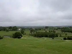 • The Chateau of Arcangues is registered as an historical monument.[27] It was rebuilt in 1900. The central body of the building, flanked by two wings, is surmounted by a glass roof which illuminates the interior of the building. It stands on a small hill in the middle of a small park planted with oaks.